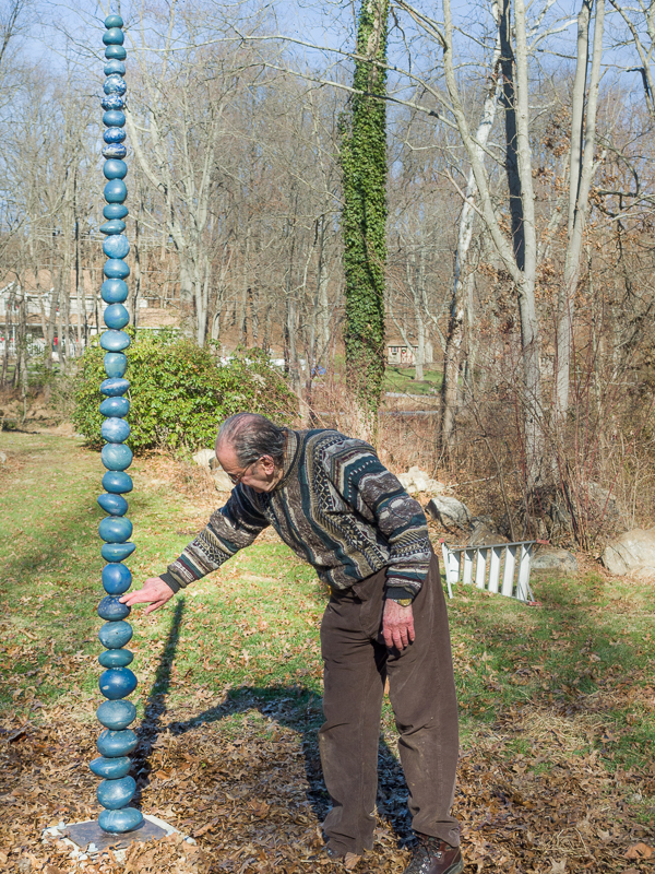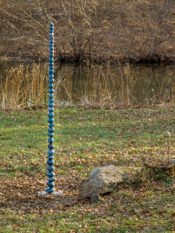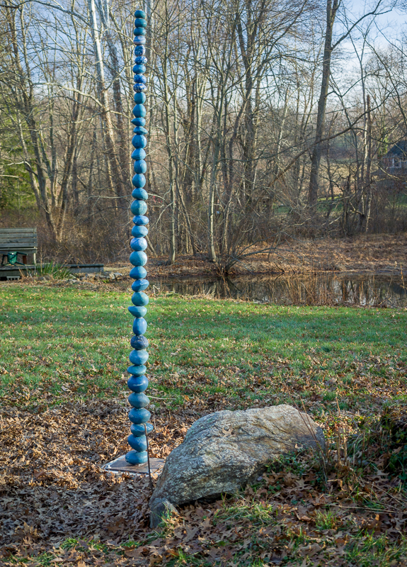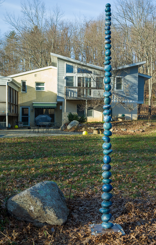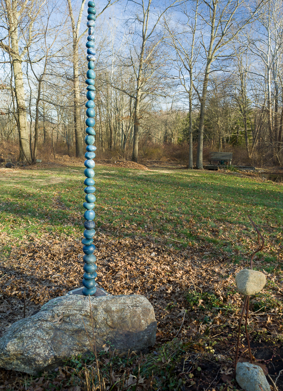 On Saturday, local artist John Costanza installed Ahhhhhhhh 12 at our home on Peeper Pond. The sculpture comes from a series of similar pieces made of organically shaped ceramic globes supported by a steel rod. Jane and I are extremely grateful for having John as part of our extended family. We love his good humor, quick mind and vibrant approach to each day. And now we can share his satisfied sigh, Ahhhhhhhh 12.